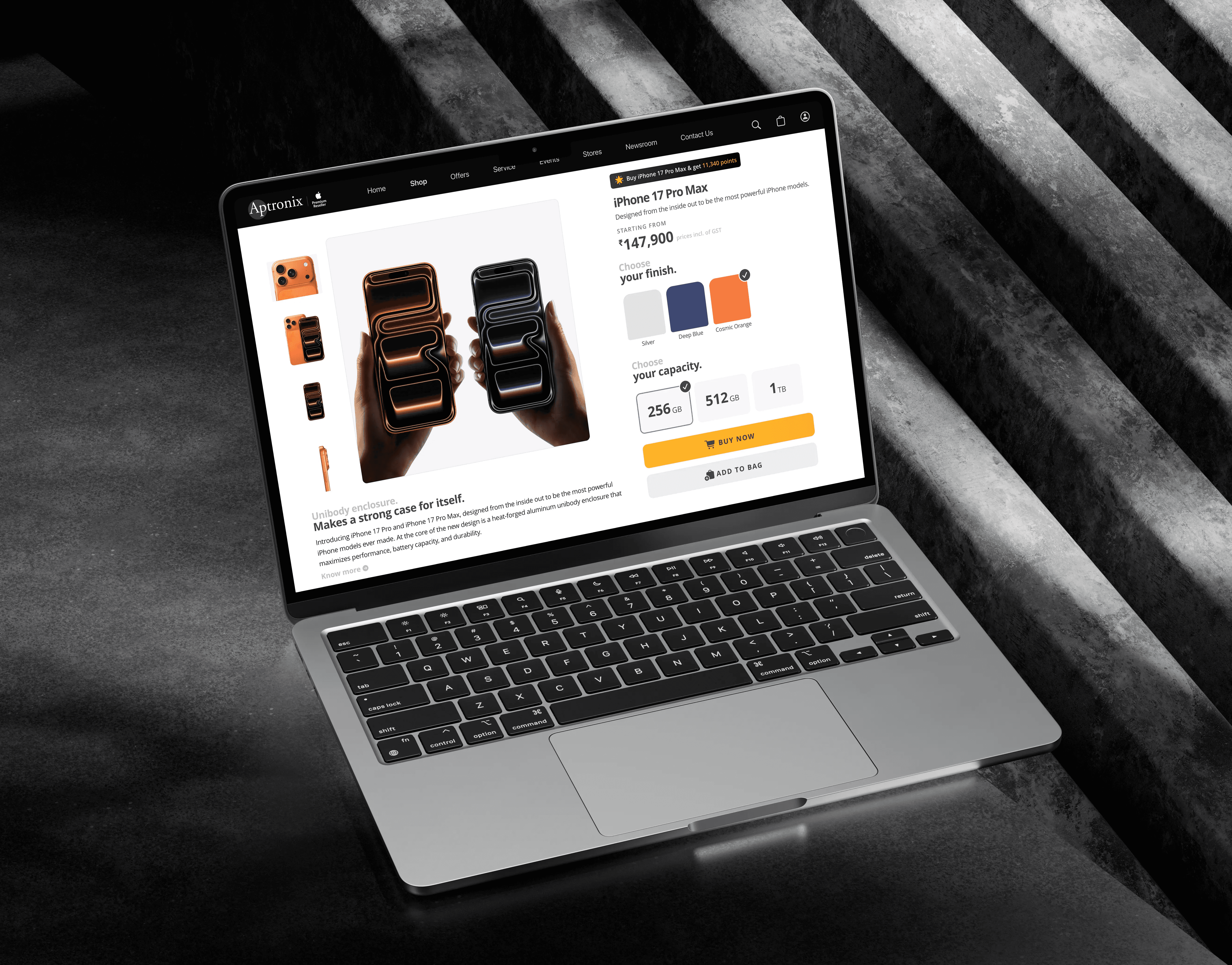 A premium conversion-focused commerce experience that successfully shifted customer behavior toward online purchasing, increased basket value, and strengthened Aptronix’s digital retail presence across India.